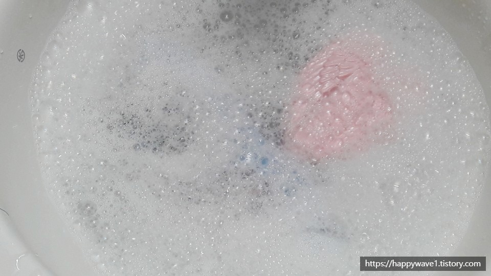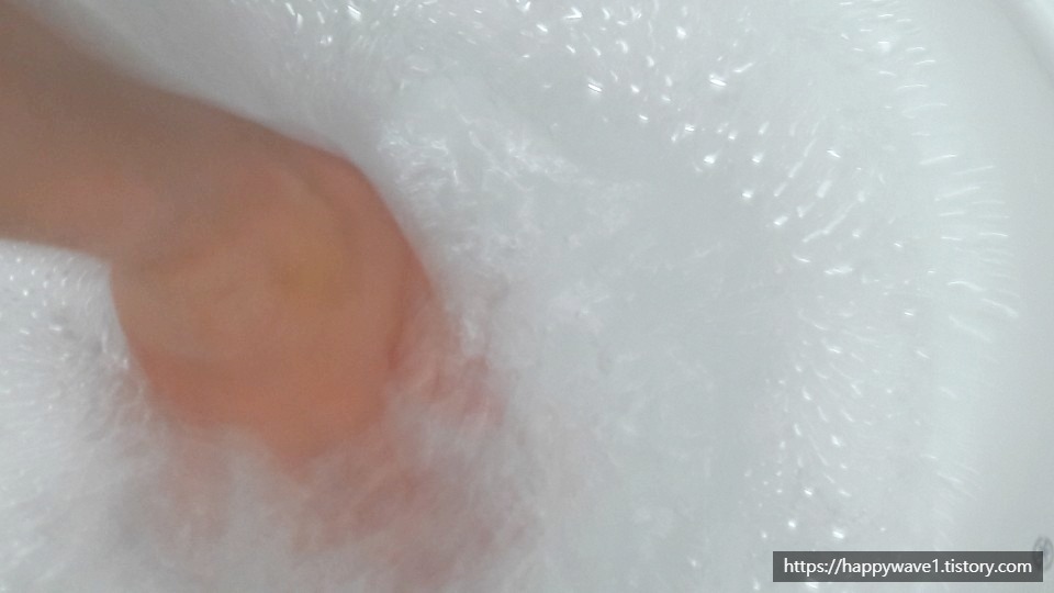 2. 그리고 화장실로 가서 세면대에 미지근한 물을 채우고 바디클렌저 또는 샴푸를 몇번 펌프질 한 다음에 손으로 휘저어 충분히 거품을 내준다. (필자는 바디클렌저 사용했음)